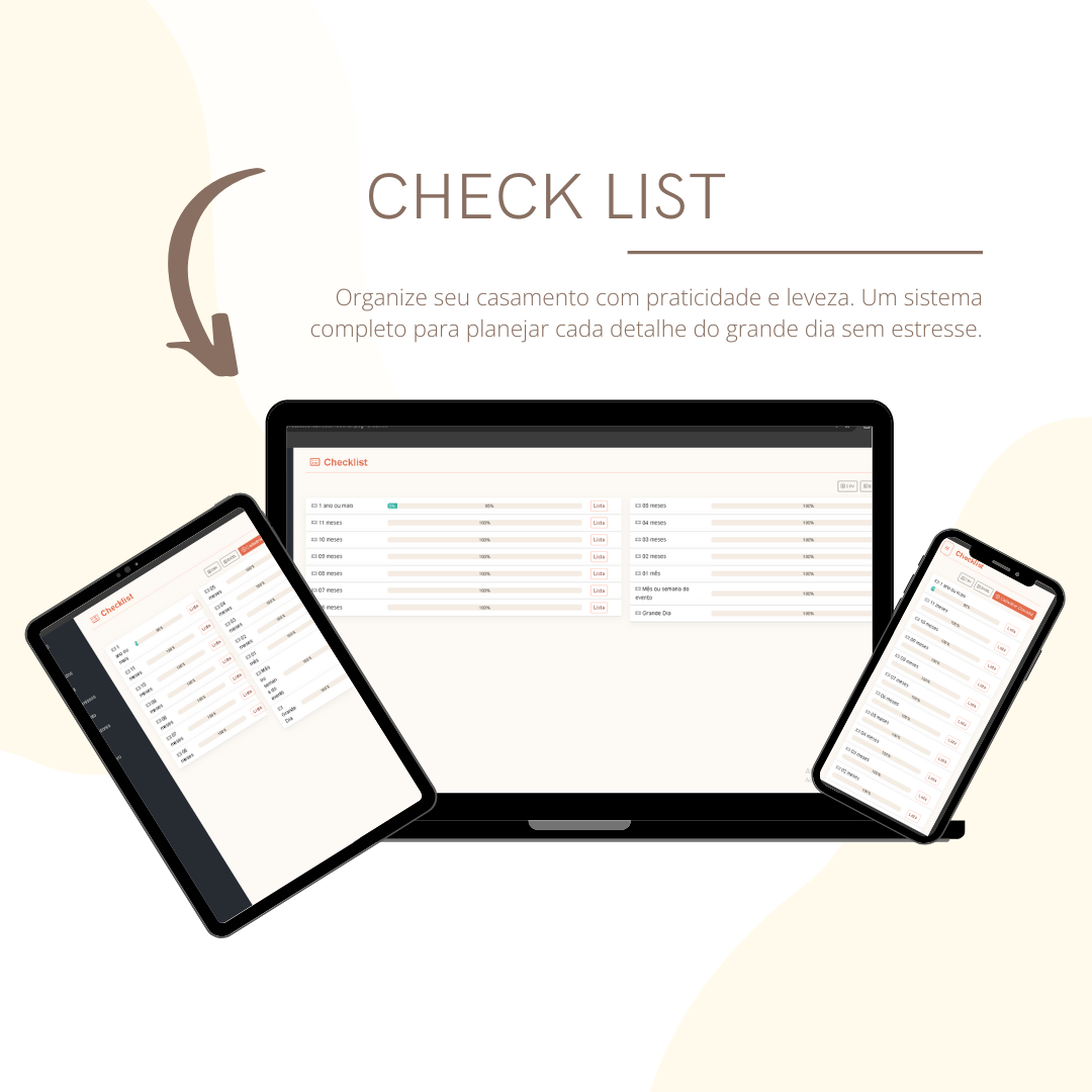 Com essa ferramenta, você recebe mais de 120 tarefas descritas passo a passo para organizar todo seu casamento, além de todos os recursos oferecidos pelo Plano, e um bônus: um Pinterest com centenas de referências organizadas especialmente pra você se inspirar.